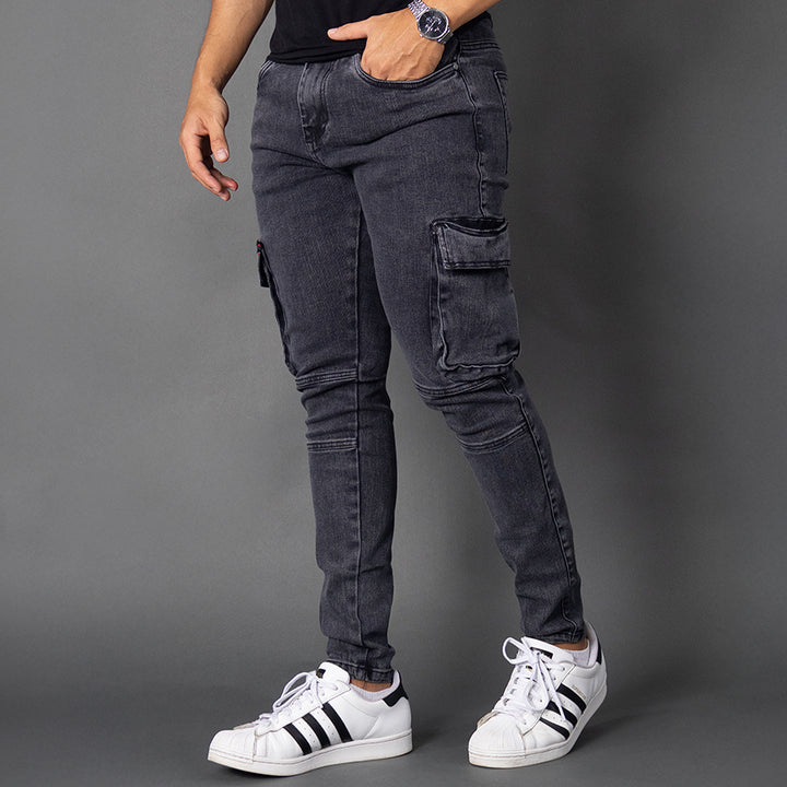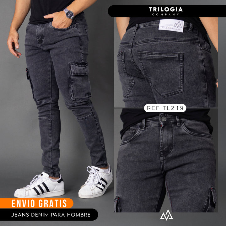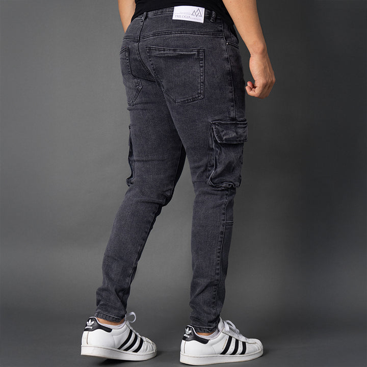 Jean cargo gris oscuro Trilogía Jeans, confeccionado en denim premium de alta resistencia, con un fit moderno que realza tu estilo urbano. Incluye bolsillos cargo funcionales que aportan practicidad y un look versátil, perfecto para combinar con sneakers o botas.