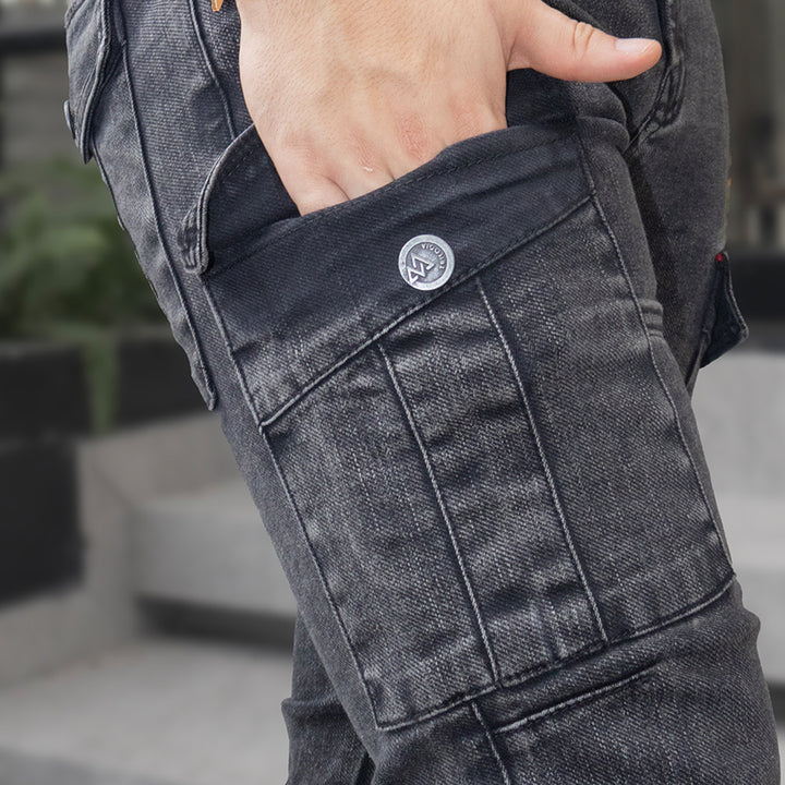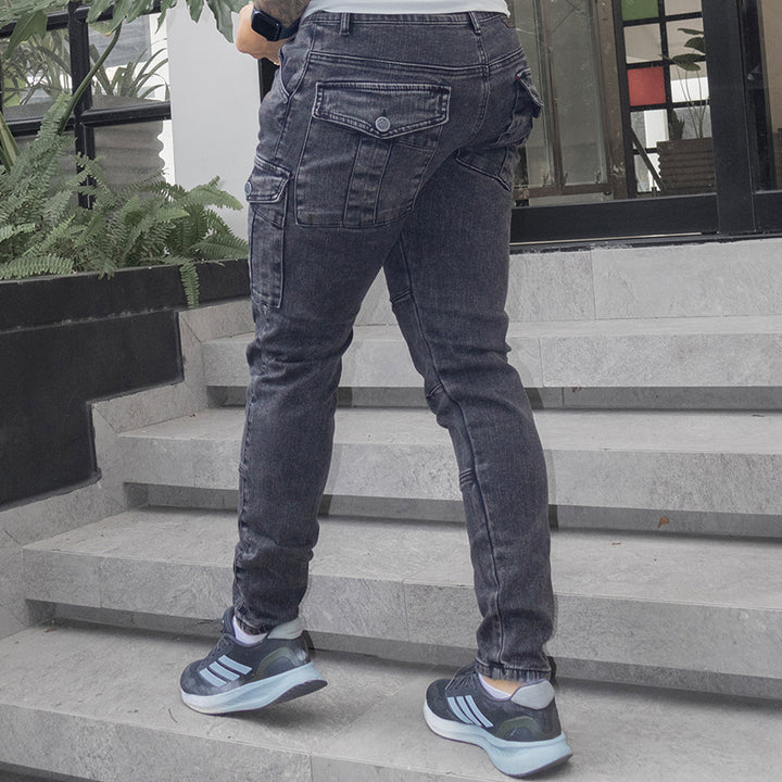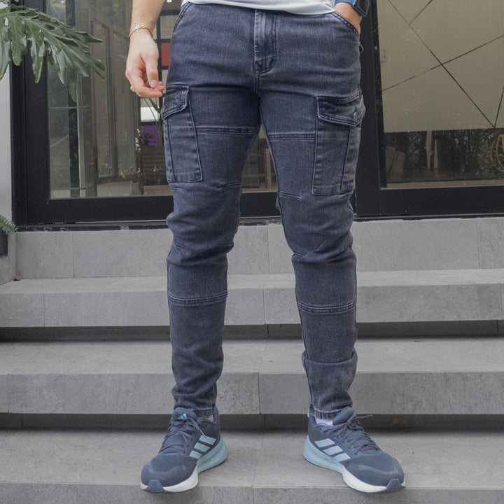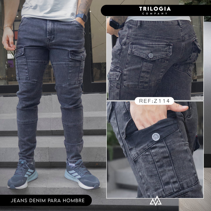 Jeans cargo cpara hombre, con bolsillos utilitarios y un diseño moderno y funcional. Corte recto para un ajuste cómodo y relajado, confeccionados en denim de alta calidad con acabado desgastado. Ideales para un estilo urbano y versátil, combinan perfectamente con camisetas, chaquetas y sneakers.