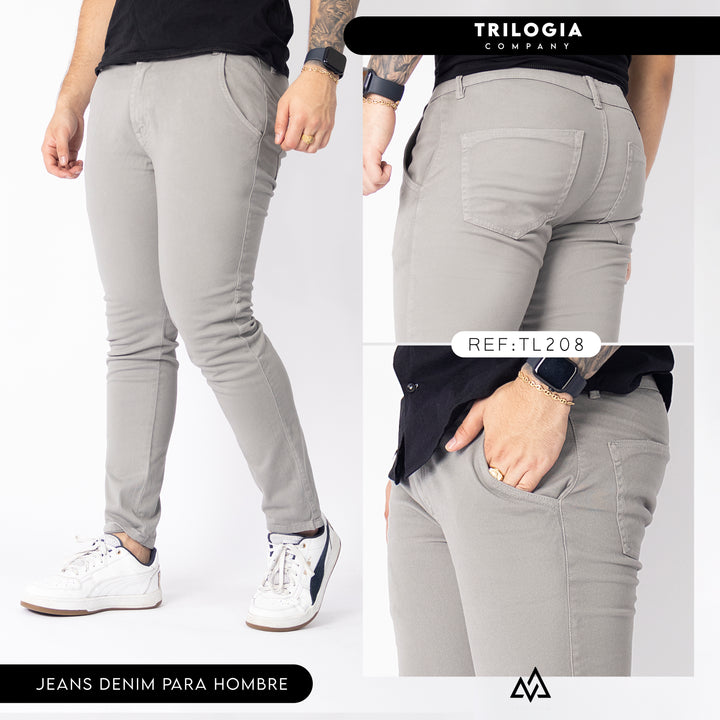 Jeans clásico gris para hombre, con un diseño atemporal y versátil. Confeccionados en denim de alta calidad, con corte recto y ajuste cómodo que brinda un estilo elegante y casual. Su tono gris los hace perfectos para combinar con cualquier prenda, ideales para un look sofisticado o relajado.